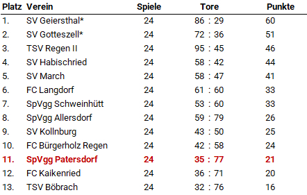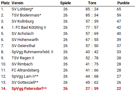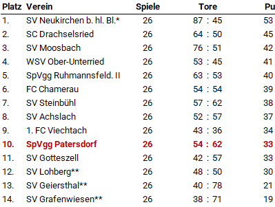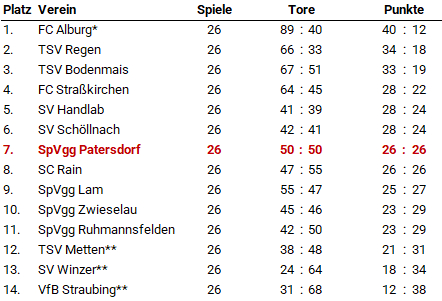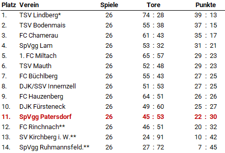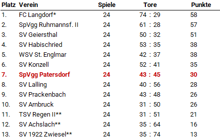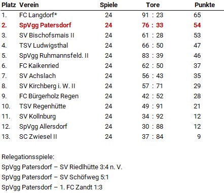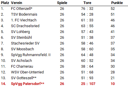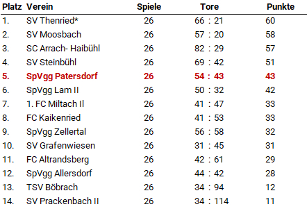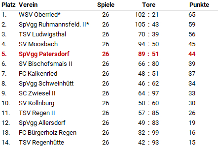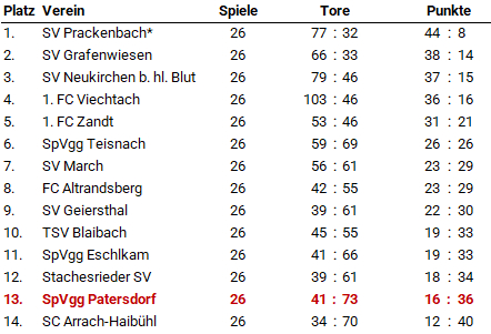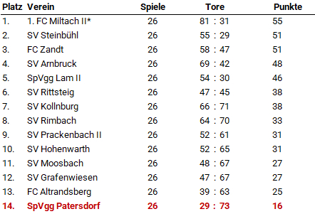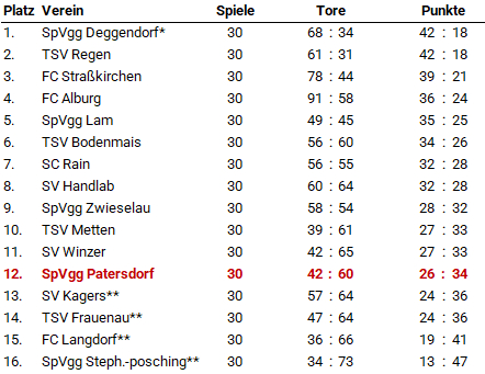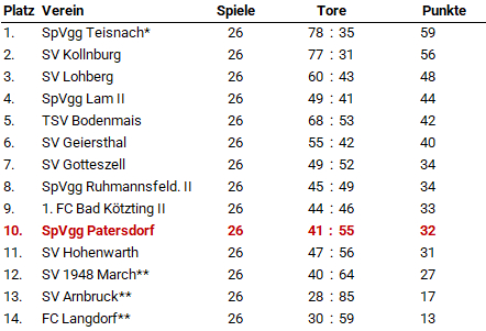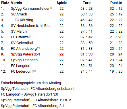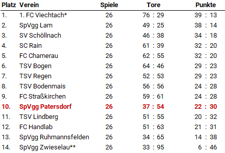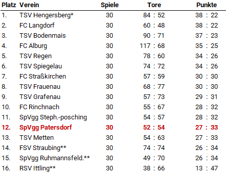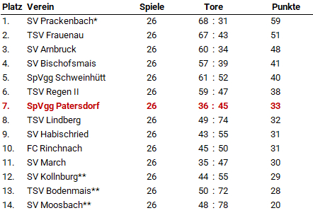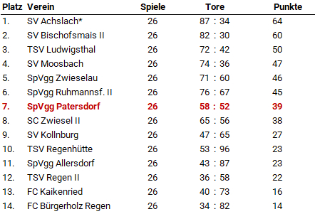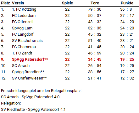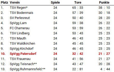 Quellen: Viechtacher Bayerwald-Bote 1960-2004, www.bfv.de, www.fupa.net, Archiv SpVgg Patersdorf
